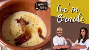 Ingredientes: Amêndoas; Manteiga; Açúcar; Azeite de oliva; Cebola; Farinha; Presunto de Parma; Alho poró; Damasco; Salsinha; Farinha em flocos; Uva passa (escuras e claras); Cachaça;