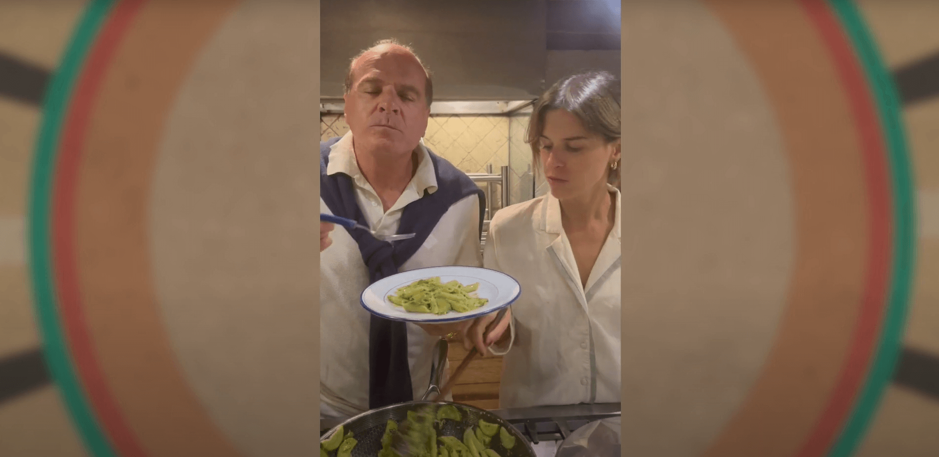 Ingredientes: Abobrinha; Queijo Pecorino; Manjericão; Pistache; Sal; Azeite; Alho; Massa ‘curta’ (Penne Grano Duro da Adria); Modo de preparo: Corte a abobrinha em fatias bem fininhas e