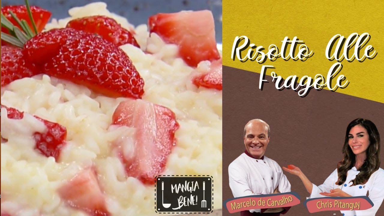 Ingredientes: Manteiga; Azeite; Morango; Cebola; Queijo parmesão; Queijo mascarpone; Arroz arbóreo; Caldo de legumes; Salsão; Salsinha; Cenoura; Prosecco seco (ou champagne seco); Modo de preparo: